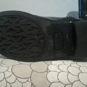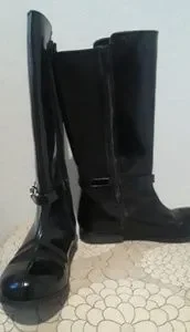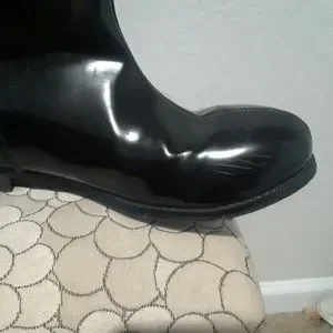 Size 4 black (fits like a 6.5 women's), patent leather boots, Michael Kors. Great condition and barely worn, but just a couple scuffs along the bottom which could be buffed out. Stretchy material in the back. Super cute!