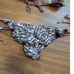 Agua Bendita Bikini Set Small Purple Feather Ribbon Embroidered Brazil Scrunch