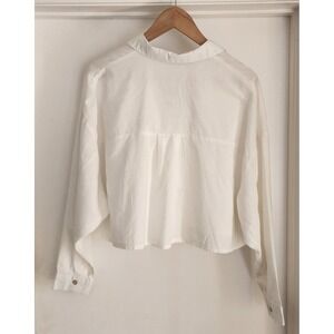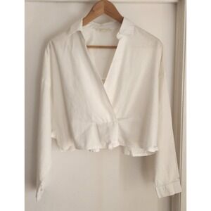 GRADE GATHER White Cropped Wrap Shirt Long Sleeve Collared Button Front Size S