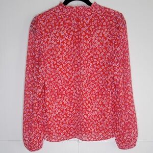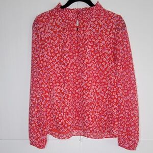 J.Crew Heart Print Blouse Women’s M Red Pink Long Sleeve Romantic Top