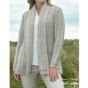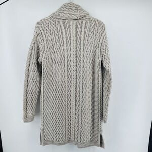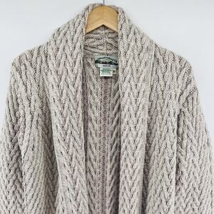 Aran Crafts Cardigan Sweater Women Ireland Merino Wool Neutral LONG Edge to Edge
