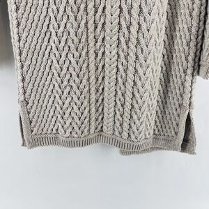The Aran Crafts Cardigan Sweater is a luxurious and stylish piece crafted from 100% merino wool in Ireland. This neutral beige sweater features a herringbone pattern with a cable-knit style, making it perfect for the colder seasons of winter and fall. With a regular fit and long sleeves, this sweater is both comfortable and practical. It also includes an open neckline, shawl collar, raglan sleeves, and convenient pockets, making it ideal for travel and casual occasions. The chunky and thick, fisherman design adds a touch of sophistication, making it a versatile addition to any woman's wardrobe.