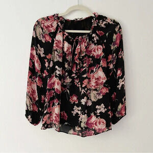 Joie 100% Silk Floral Print Blouse in Black Pink and Cream Size XXS Boho