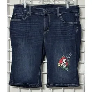 Disney Princess Bermuda Denim Dark Wash Mid Rise Jean Shorts Ariel Size 12