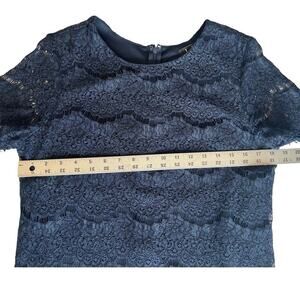 Lulus Take Me To Brunch Navy Blue Lace Shift Dress, Large, Mini, Short Sleeve