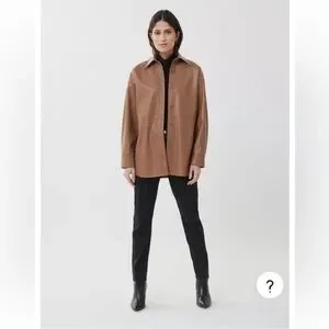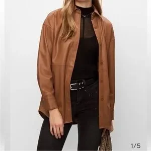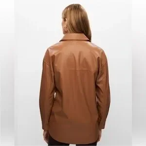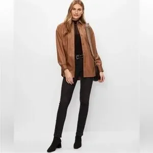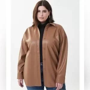 New Joseph Ribkoff | Tan Beige Button Down Vegan Leather Faux Leather Overshirt