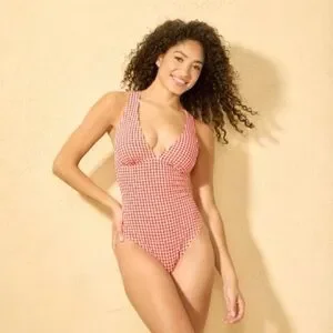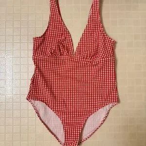 Shade & Shore Red Gingham One-Piece Swimsuit Size XL