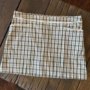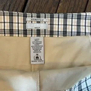 IZOD GOLF Skort Skirt Shorts Cream, Beige & Black Plaid Womens Size 16
