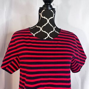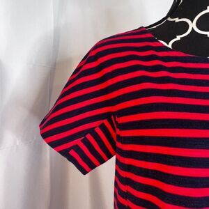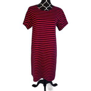 J Crew Navy Blue & Red Striped Cotton Tshirt Shift Dress Nautical Preppy Size MD