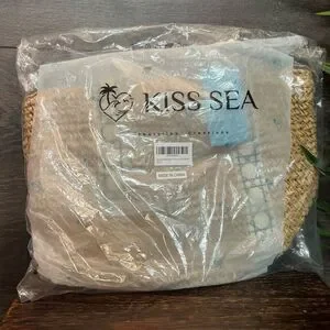 Kiss Sea Shoreline Creations Packable Woven Tote in Tan. New and sealed.