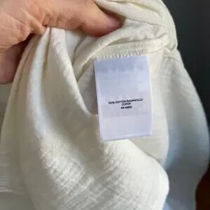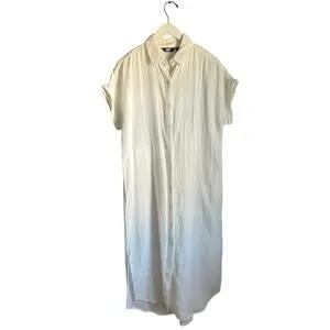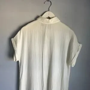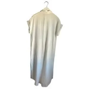 Lands End Dress 100% Cotton Gauzy White Midi Summer Short Sleeve Minimalist sz M