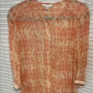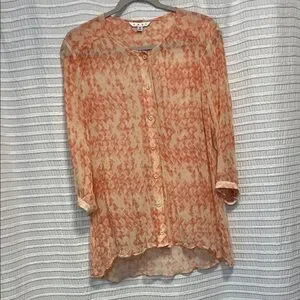 Excellent condition- high low button down silk top - dry clean only - gorgeous pink and beige
