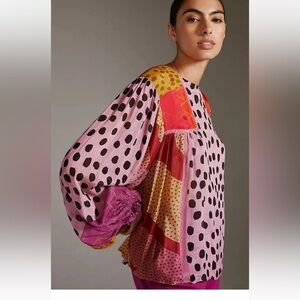 Z010. Anthropologie Miranda Peasant Blouse Bl-nk Boho Blank Spot Patchwork