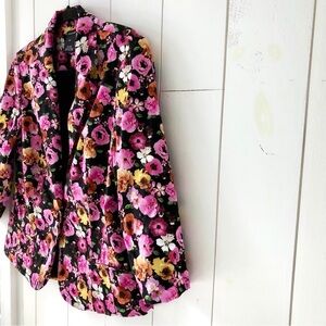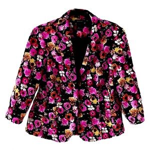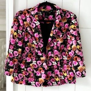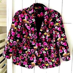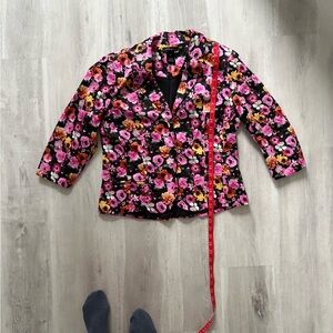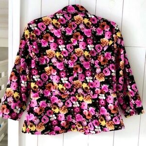 Very pretty Canada designed, Alison Sheri brightly floral blazer of yellow, orange and pinks