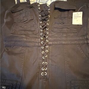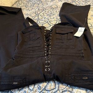 Good American twill lace up utility jumpsuits size m NWT