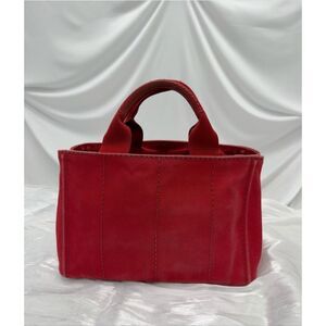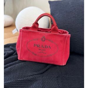 PRADA SMALL RED CANVAS CANAPA HANDBAG