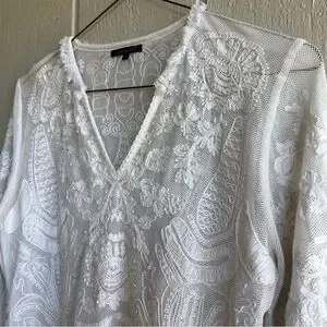 Kobi Halperin Sheer Lace Embroidered Tunic — Ivory (Size S)