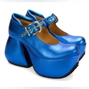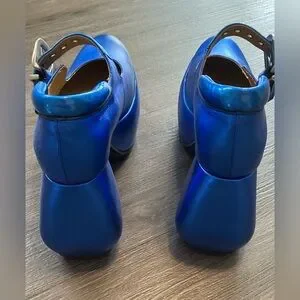 John Fluevog Blue Metallic Kool Platform Mary Janes Women’s size 8