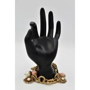 • Color: Gold tone with pink and pearl accents