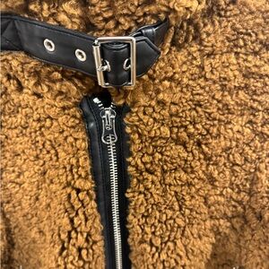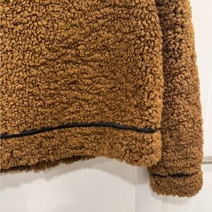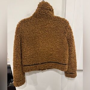 Cozy teddy jacket by Stand Studio. Features a rich brown color. Front zipper closure. Perfect for layering.