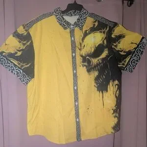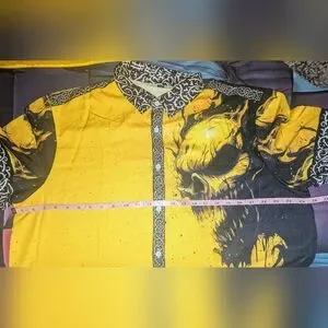 Bold Yellow Graphic Button Down Shirt Fits Like XL