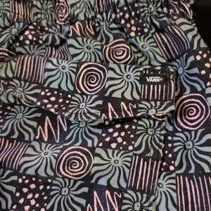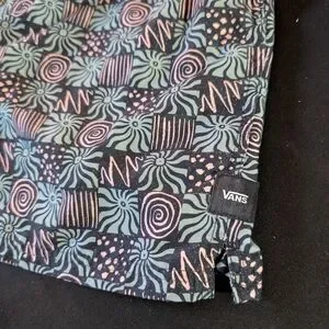 Vans Geometric Pattern Cargo Shorts Drawstring Pockets Logo Black Pink Green XL