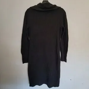Ann Taylor Black Cowl Neck Long Sleeve Ribbed Wool Knit Midi Dress