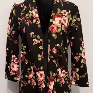 Elevate your style with this elegant women's blazer featuring a vibrant floral design. Perfect for adding a touch of sophistication to any outfit.