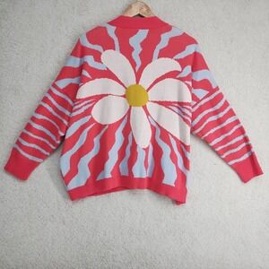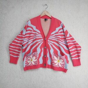 Shannon Passero Cardigan Womens O/S Coral Blue Daisy Graphic Knit Button Pockets