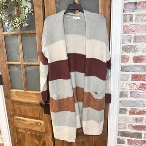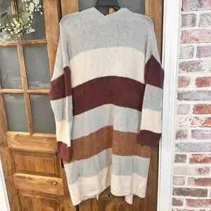 Keywords: Entro cardigan, colorblock sweater, striped knitwear, longline cardigan, open front sweater, casual knit, cozy sweater, fall fashion, winter layering, boho cardigan, relaxed fit, women's knitwear