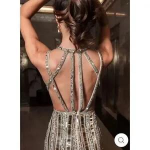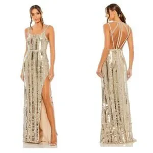 Mac Duggal Bead-Embellished Detail Halter Neck Gown Gold/ Silver Size 14 NWT