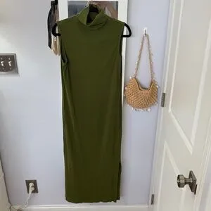 House of Harlow 1960 Olive Green Sleeveless Turtleneck Maxi Dress