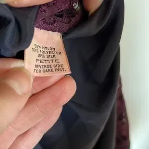 Midnight blue with purple lace size says Petite and it should be close to a 6.