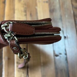 Coach Accordion Vintage Tan Leather Zip Wallet Wristlet