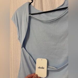 baby blue top open back tee low back shirt soft girl aesthetic y2k minimalist top model off duty outfit casual chic summer top fitted tee stretchy rayon top clean girl outfit effortless outfit everyday essential lightweight knit top