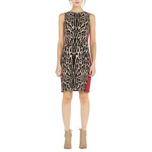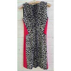 Eva Varro Sheath Dress XS Animal Print Bright Stretch Jersey Color Block 90s