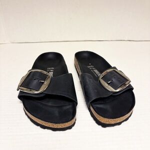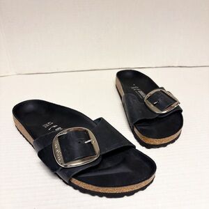 NWOB Birkenstock Madrid Big Buckle Oiled Leather Sandals in Black