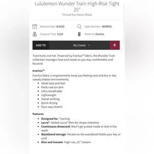 LULULEMON NWT Thread Dye Wunder Train Gray Size 4 Rover Black