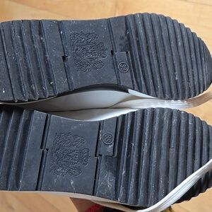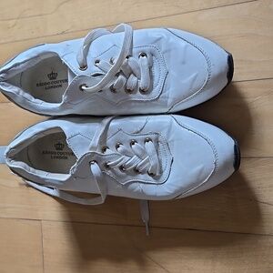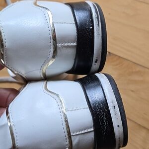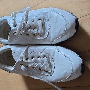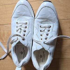 EURO RETRO FAUX LEATHER White GOLD STARS Platform Sneakers with Gold Trim 8.5
