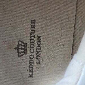 White low-top platform sneakers with gold accent trim. Lace-up style with black midsole stripe. Clean, modern look. Versatile casual shoe. european. Keddo couture brand.
