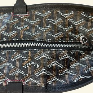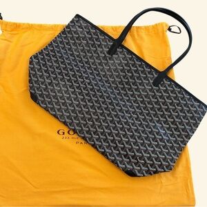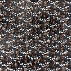 Classic tote with goyardine chevron pattern in black and brown. Leather top handles and trim. Spacious, lightweight carry for everyday use. Timeless, versatile silhouette. No details have been spared, from the print to the materials.