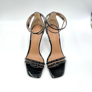 Chinese Laundry women's Jasmine faux vegan black patent leather ankle strap dress sandals / heels / shoes. Women's size 7.5.