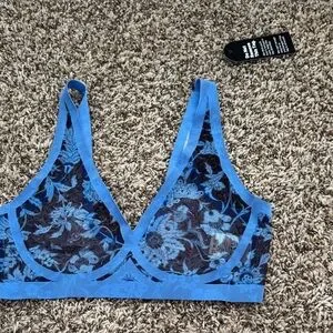 Discover elegance and comfort with this blue floral lace bralette, perfect for any occasion.