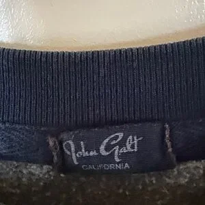 John Galt navy crewneck sweatshirt with "Switzerland" lettering. Features a red shield crest with a white cross. Classic crew neckline and ribbed trim with warm. Heavy cotton. Laid-back, easy-wear style.
