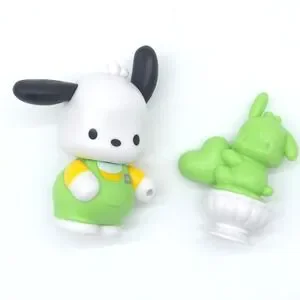 Sanrio fans will love this Hello Kitty and Friends collection featuring a variety of fun items. This set includes a Build-A-Bear drawstring bag with a colorful character print, a Hello Kitty plush in a giraffe costume with tags, and a Pochacco pencil case. Also included are a Hello Kitty ham and cheese food cutter for bento boxes, a small Pochacco figure, and a Gashapon capsule toy. Perfect for gifting or adding to a Sanrio collection. Note: The drawstring bag tag has some sticker residue/damage.