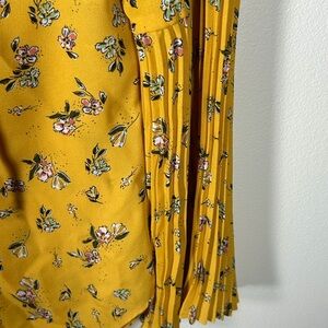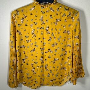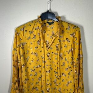 Lauren Ralph Lauren Womens Small Yellow Floral Pleated Bell Sleeve Ruffle Blouse