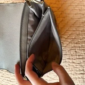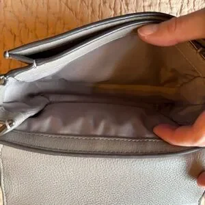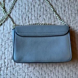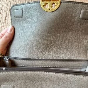 Tory Burch Heron Grey Leather Chelsea Shoulder Bag w Gold Hardware & Chain