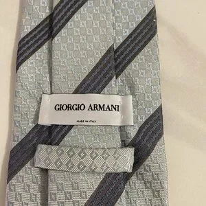 Giorgio Armani classic corpcore gray/blue striped silk necktie