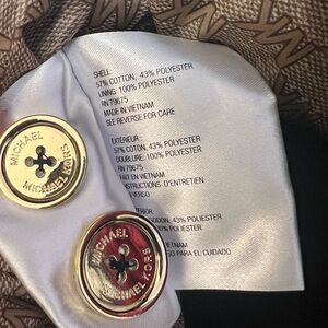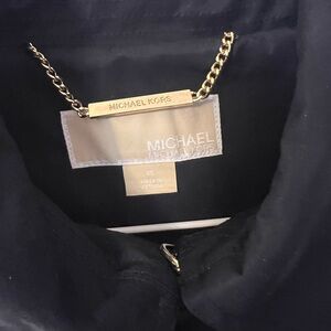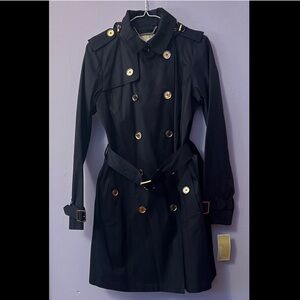 MICHEAL KORS Navy Blue Double-Breasted Rain Coat with Gold Accents