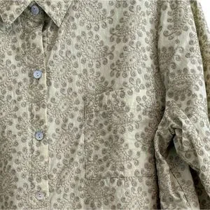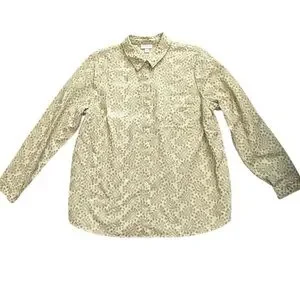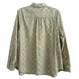 Lovely J. Jill olive green button-up blouse featuring beautiful floral embroidery for a soft, boho-inspired look. Made from lightweight cotton that’s breathable and comfortable for everyday wear.